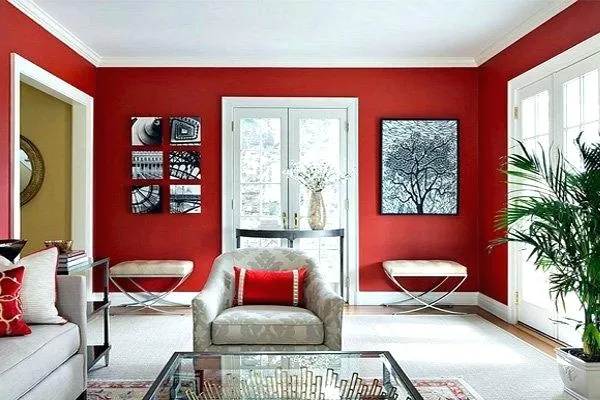 Si te resulta muy osado pintar todo de rojo, puedes pintar zócalos y aberturas en color blanco, teniendo en cuenta que los colores oscuros se suavizan pintando en color claro los marcos y otros detalles decorativos.