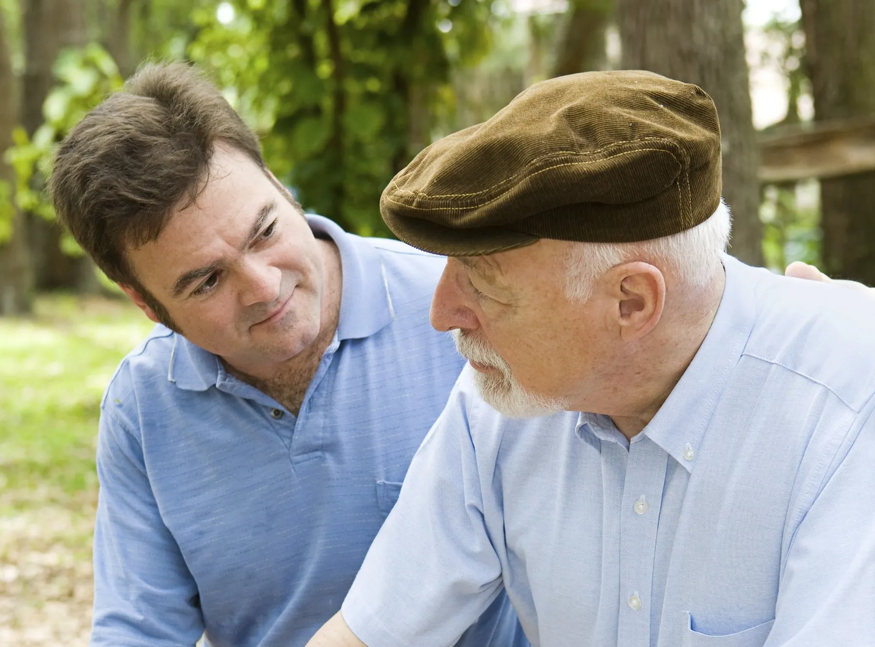 En el jardín de una casa, padre e hijo sentados en un banco. El primero un hombre de edad, le presumo unos 70, el hijo de unos 35 quizás. El padre absorto, el hijo leyendo. Solo el murmullo del viento y las hojas. Un ruido imperceptible llama la atención del padre.