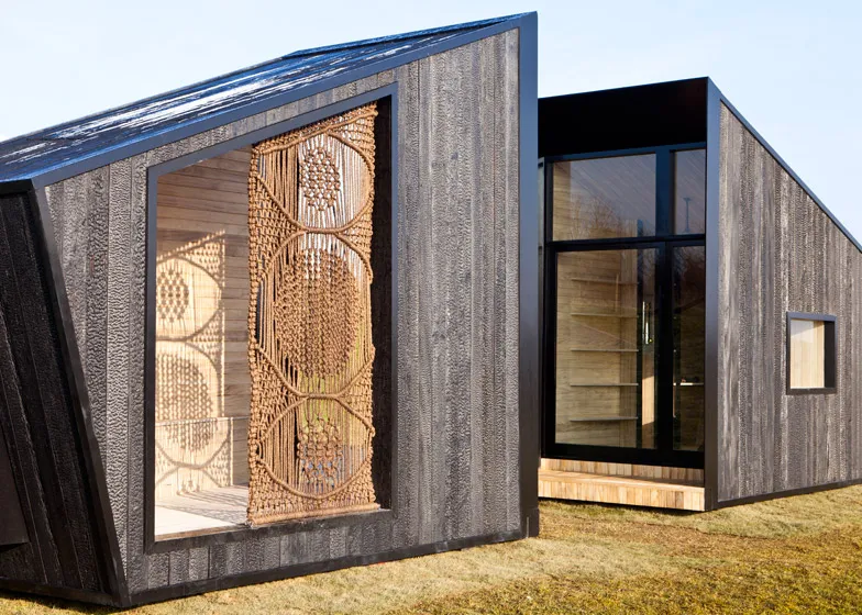 Para ejecutar los módulos se utiliza un tipo de alerce siberiano que se cultiva localmente y se utiliza en conjunción con el método de carbonización Sugi Shou para crear un eficiente revestimiento exterior natural que proteja la madera.
